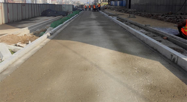 拆遷段慢車道水穩(wěn)全部攤鋪完成