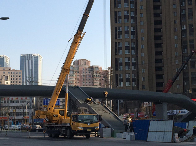 人行天橋梯道已全部吊裝完成